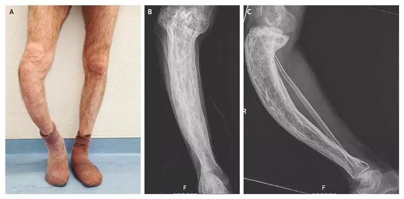 استخوان‌های ضعیف و تغییر شکل یافته ناشی از پاژه مستعد شکستگی هستند.